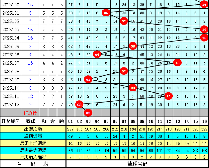 蓝球分析:在第113期历史同期开奖中,蓝球号码奇偶比为12:9,最近5年同期奇偶走势为:奇、偶、偶、奇、奇,今年同期预计再出奇数号码,参考蓝球03。