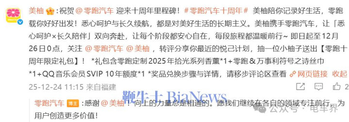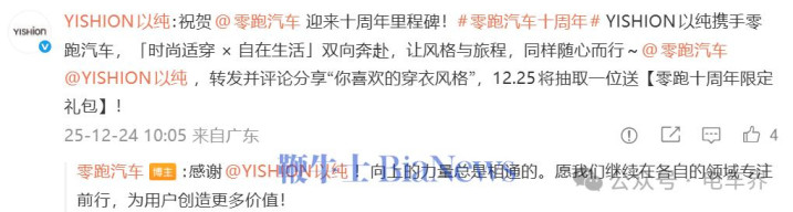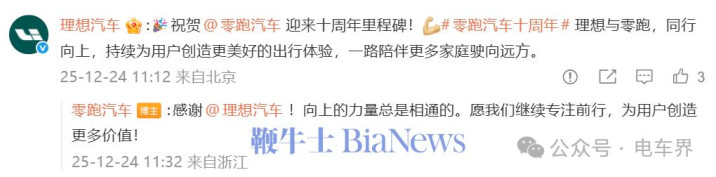 蔚来:祝贺零跑汽车迎来十周年里程碑!零跑汽车十周年未来一起向上,为更美好的绿色出行持续努力,一起加电!