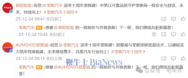 电车界注意到,各家车企纷纷在评论区为零跑送上祝福。
