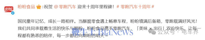 除车企之外,不少品牌也纷纷送来祝福。
